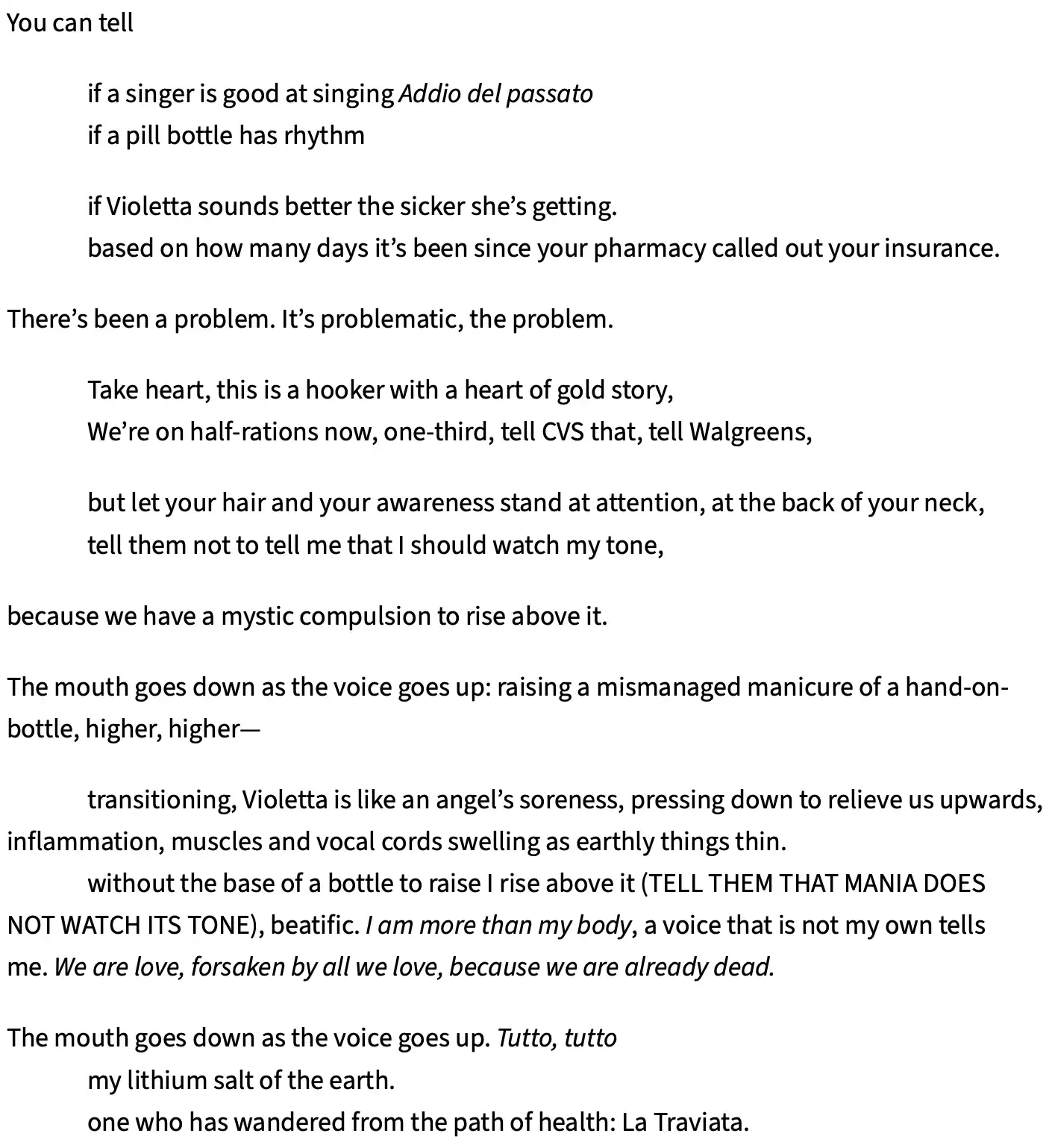 On Being Violetta When All Medicine Has Failed You